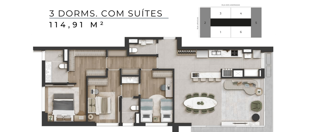 Apartamentos de 2 e 3 DORMS com suítes